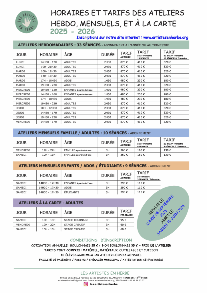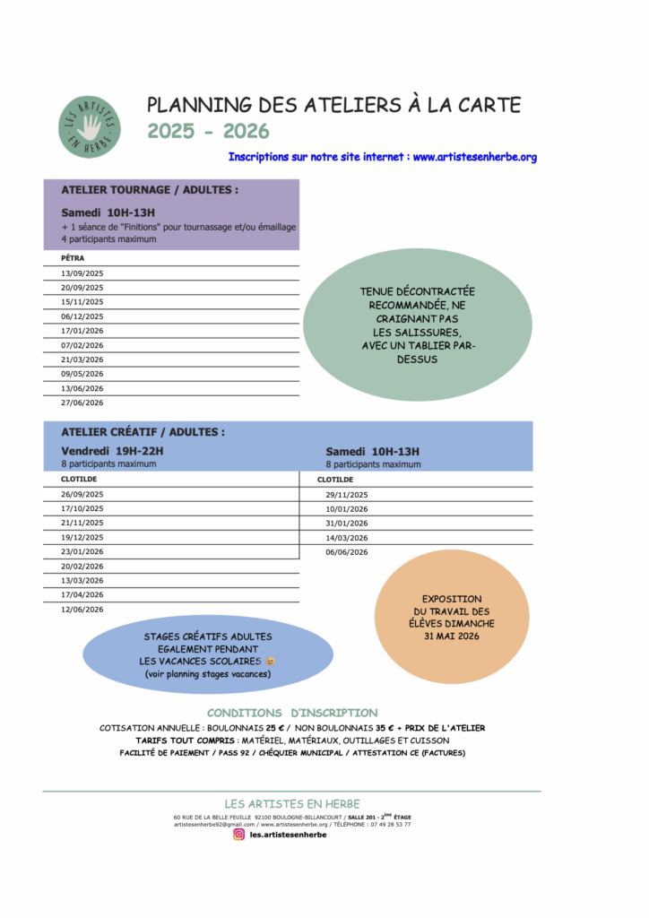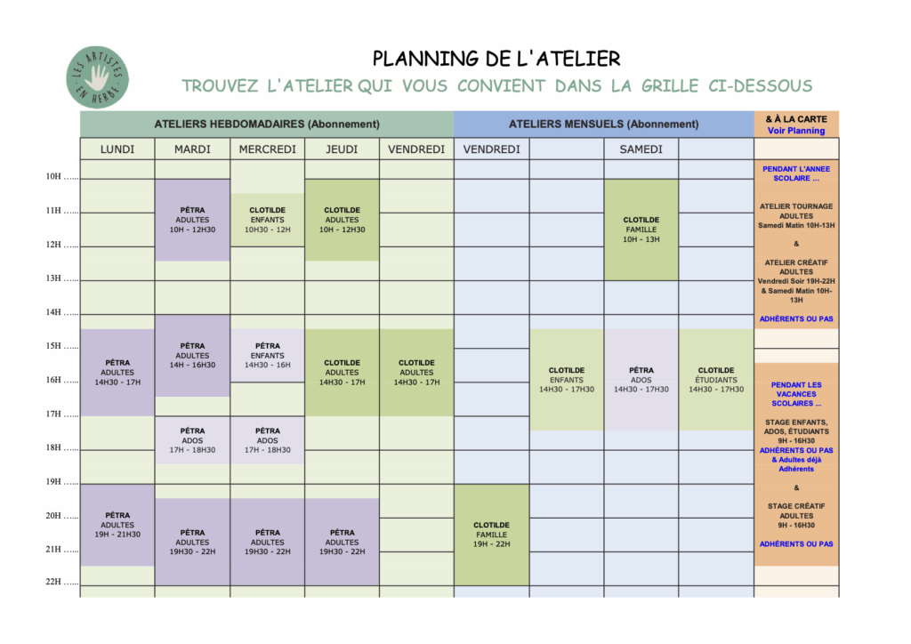 Adultes – Ateliers hebdomadaires