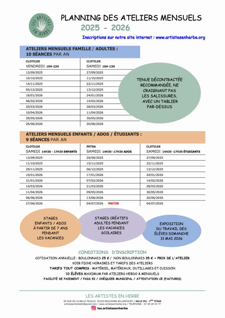 Adultes Familles – Ateliers mensuels